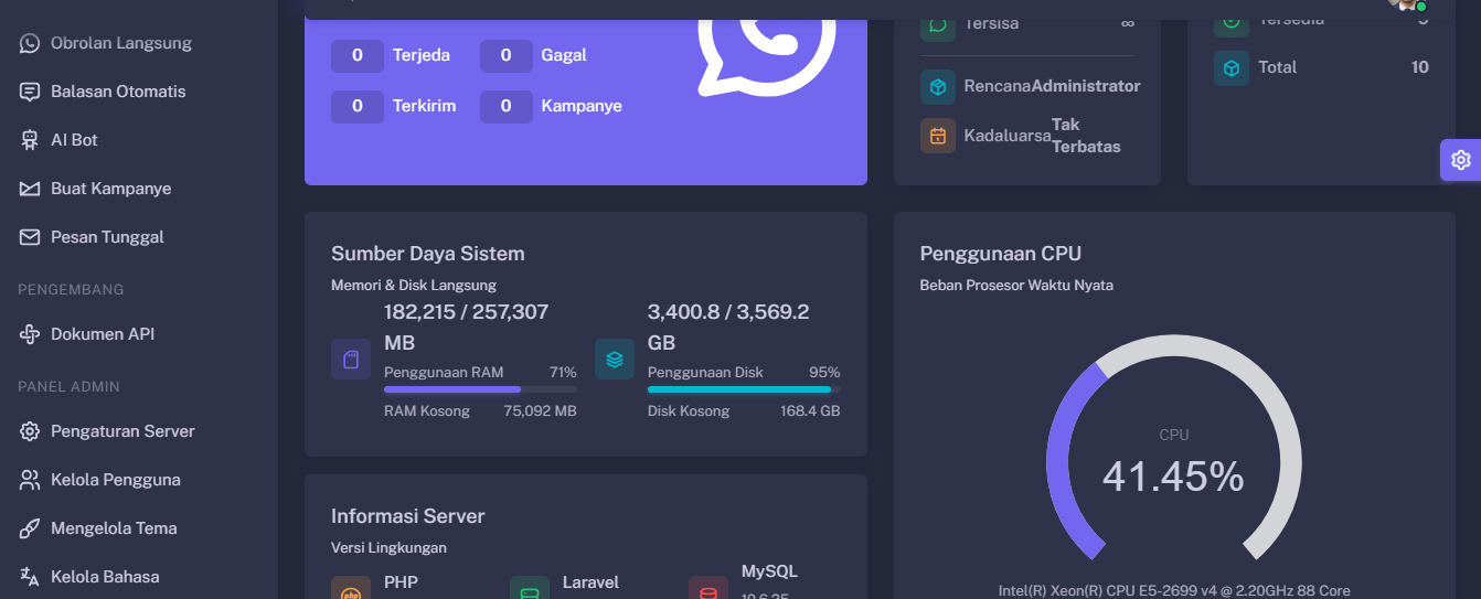 Kini Anda dapat dengan mudah dan cepat melakukan pengaturan aplikasi WhatsApp Gateway | Multi Device oleh Magd Almuntaser melalui panel pengaturan;